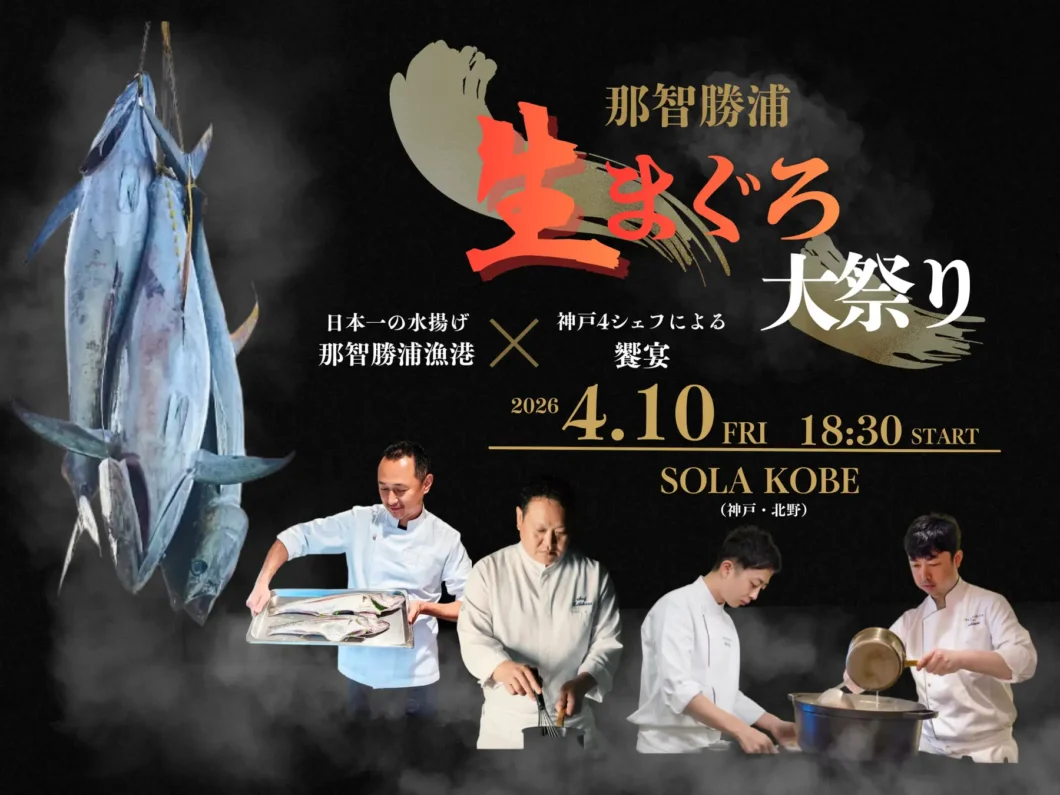 4月10日(金)、神戸・北野の「SOLA KOBE」で水揚量日本一を誇る和歌山・那智勝浦漁港から直送の『生まぐろ』を主役にしたディナーイベントが開催🐟 神戸で運営する施設を手がけるクレ …