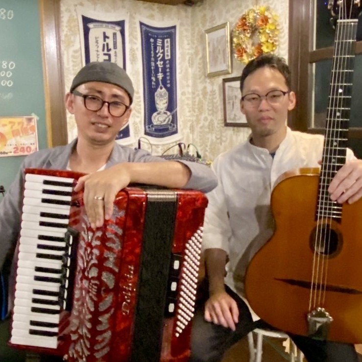 マカフェリギター・ワタナベダイスケとアコーディオン・Ixyによるジプシージャズデュオ。