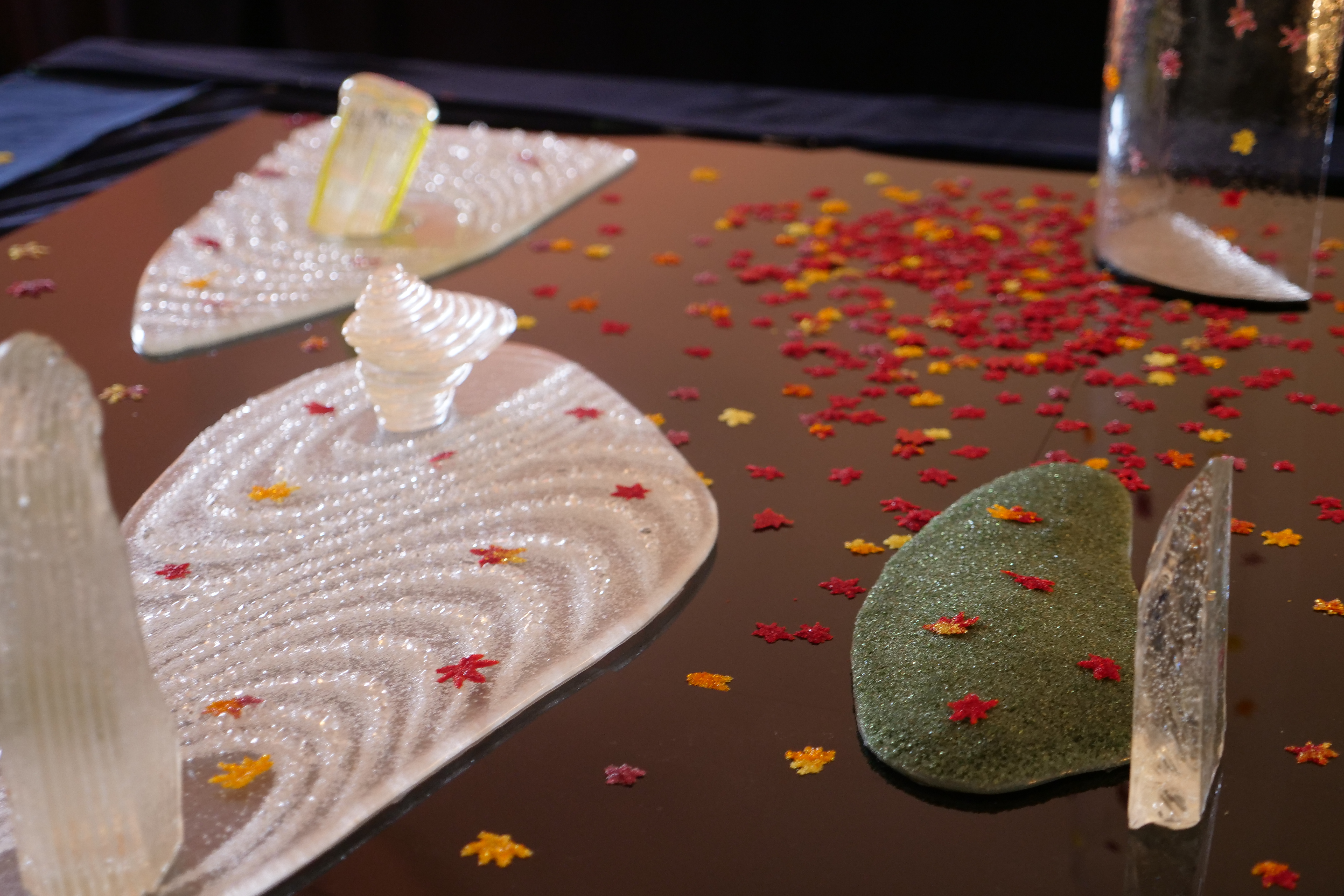 展示室の電気を暗くすると壁への映り込みを含めた作品に…!