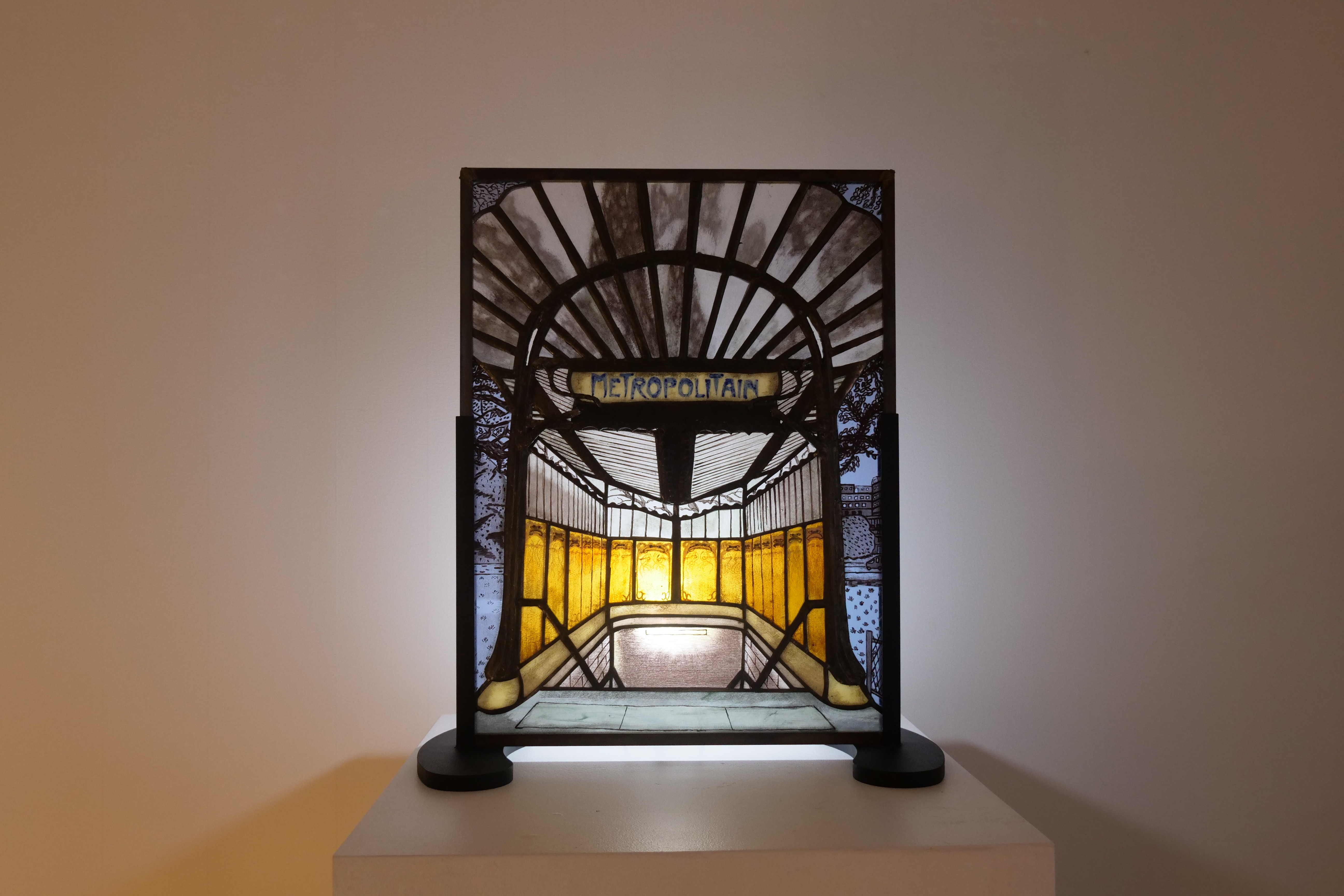 展示室の奥と2階にはステンドグラスを使用した立体作品がたくさん!