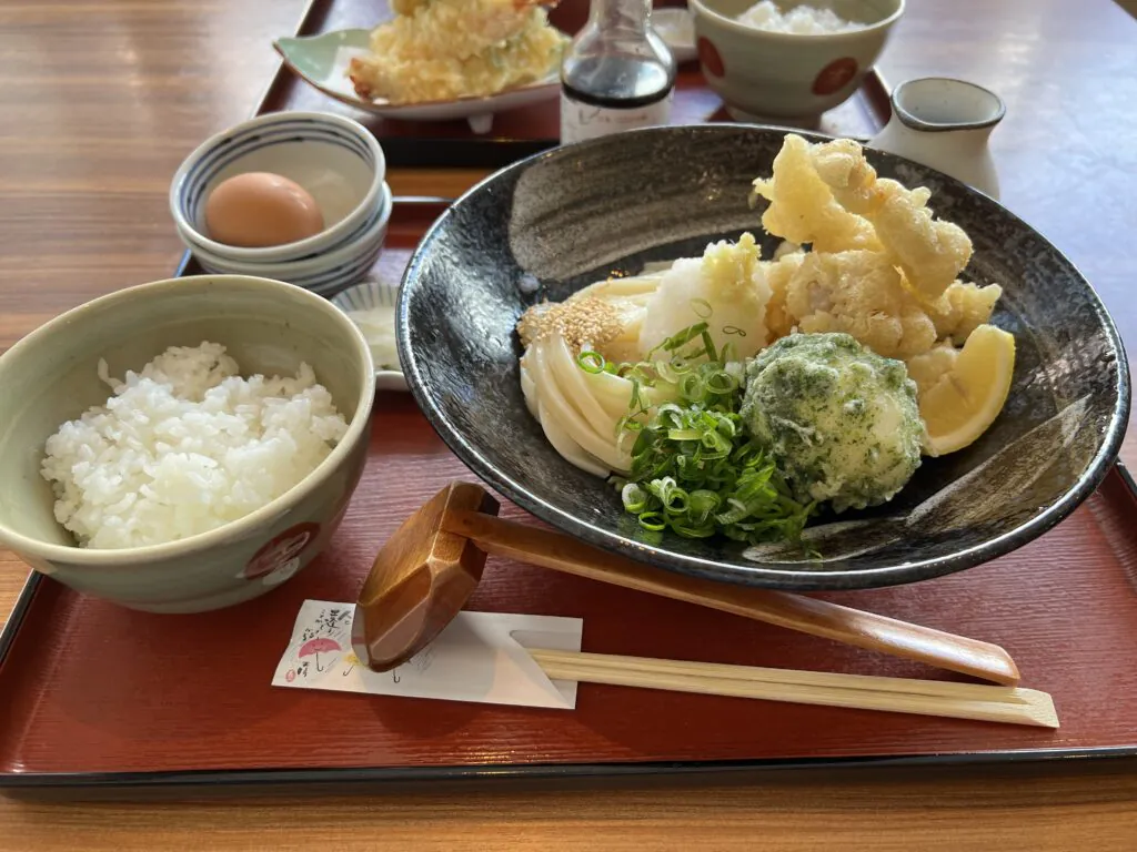 ざるうどんと天ぷらの盛り合わせwithおにぎりたち