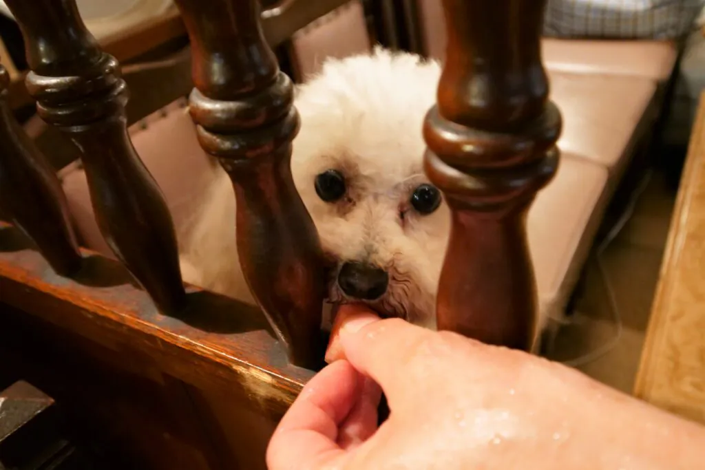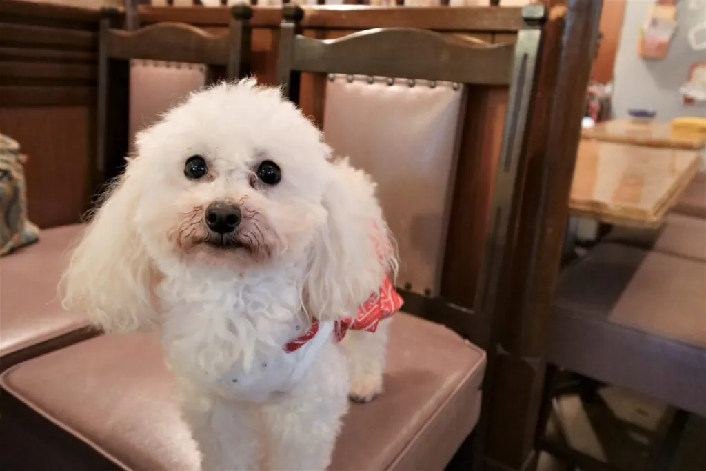 看板娘のビビちゃん。基本的には奥にある自分の専用席にいるのだが、触らせてもらうことも可能。